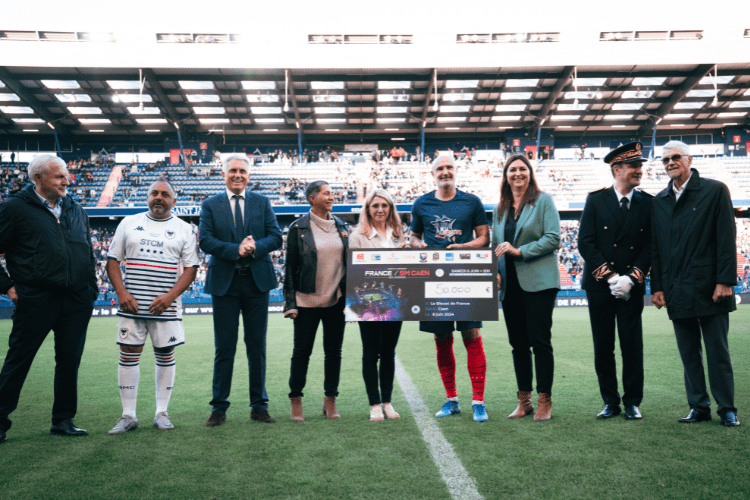 Ce lundi, Manuel Piumi directeur général du Club des Internationaux de Football et Luis Fernandez ont officiellement remis un chèque de 50 000 € à l’association « Le Bleuet de France », montant récolté sur les bénéfices du match des légendes, organisé le 8 juin dernier à Caen, pour commémorer le 80ème anniversaire du Débarquement. La cérémonie a eu lieu en présence de M. Frank Leboeuf, parrain de l'association « Le Bleuet de France », aux côtés de M. Patrick Remm, président, et de M. Pierre-Emmanuel de Laforcade, directeur exécutif de l'association, Marc Millet, représentant la région Normandie et la ville de Caen...